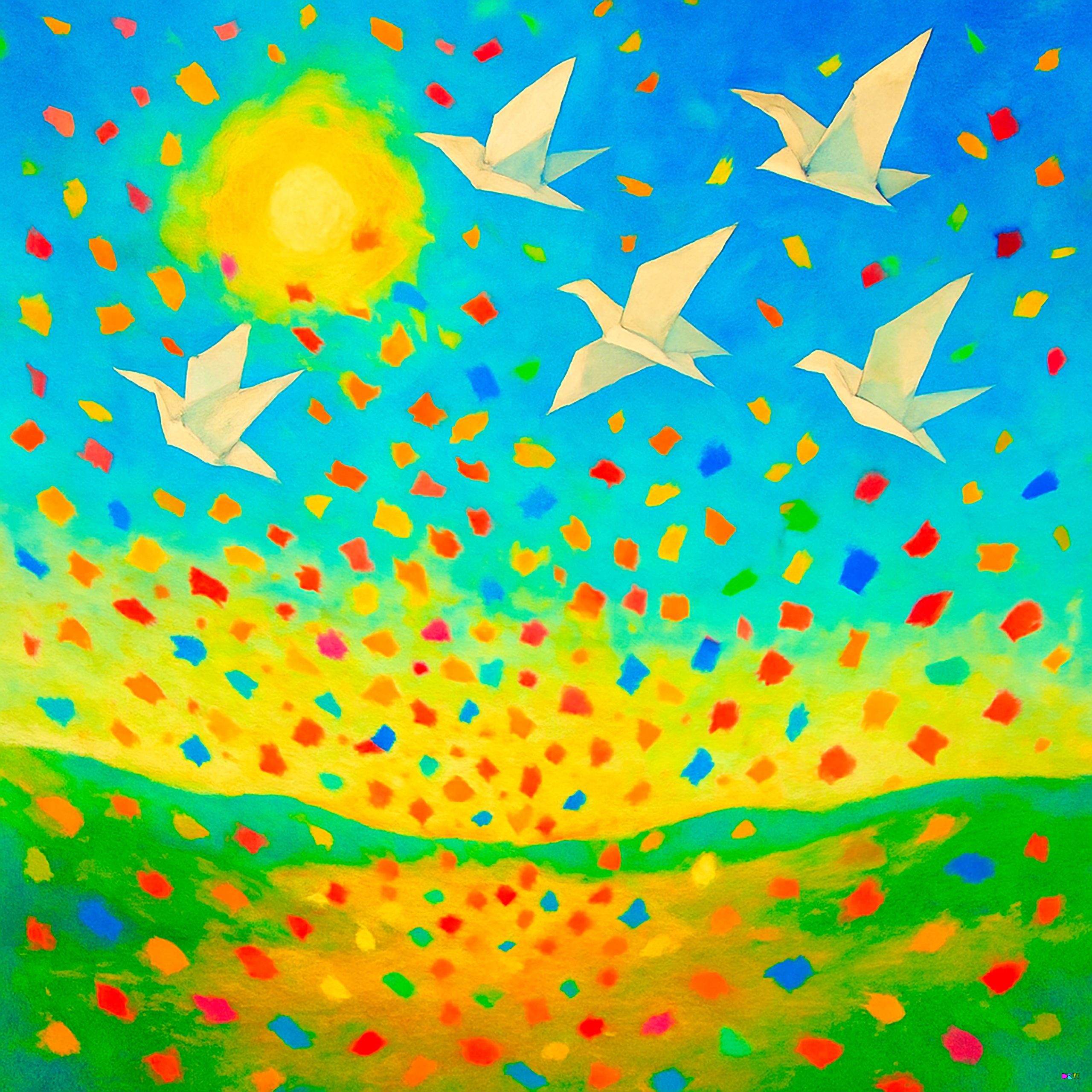 05_Sunny landscape with paper birds