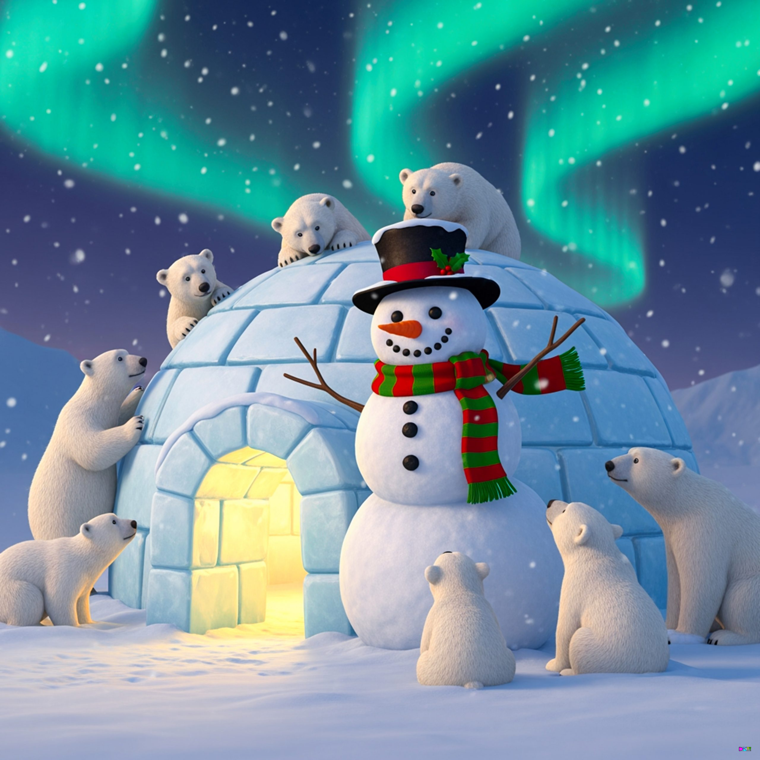 02_Snowman standing at the door of his igloo